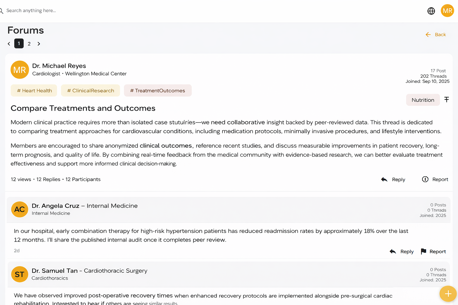 Collaborate with licensed doctors and healthcare specialists worldwide through meaningful discussions that promote continuous learning and teaching. Share cases, ask questions, and contribute to a secure, peer-to-peer exchange of clinical insights within your professional network.