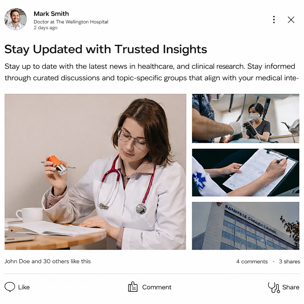 Stay up to date with the latest news in healthcare, and clinical research. Stay informed through curated discussions and topic-specific groups that ailgn with your medical interests